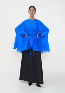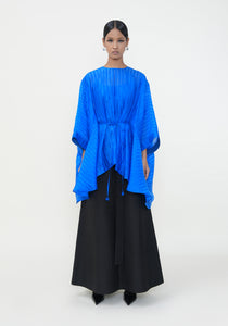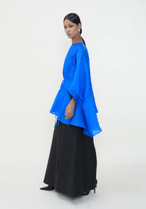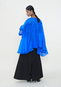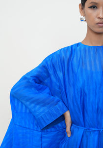 Hand-woven self-stripe silk oversized shirt with asymmetric hemline. Tie to adjust shape. Cotton slip included.