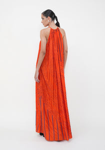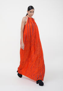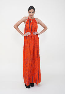 Hand-woven silk halter neck maxi dress with all over hand-embroidered glass beadwork. Cotton slip included.